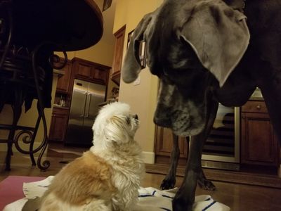 Shortly after getting her CCRT her Great Dane, Caymus, was diagnosed with Cervical Spondylomyelopathy, more commonly known as Wobbler's Disease and she has been working with him intensely ever since. Working closely with Veterinarians the combination of Medical and Physical management has reduced pain and created a playful environment for him once again.